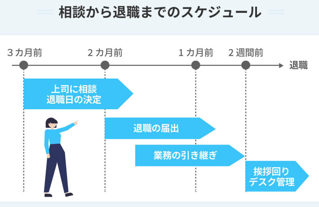 - 退職時の引き継ぎ期間を考慮する。最低でも1ヶ月前には相談をすることがおすすめ。
