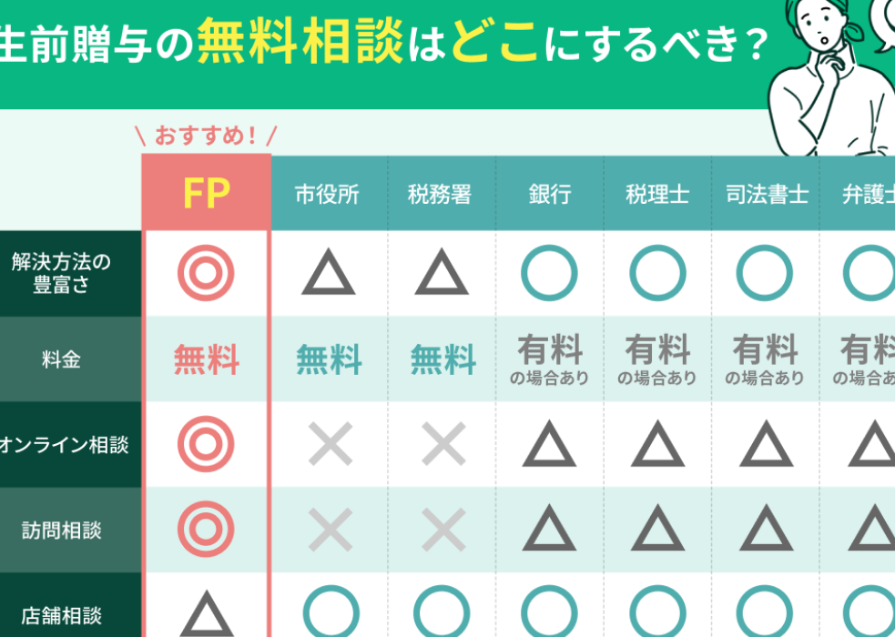 生前贈与を考える際、適切な相談相手を選ぶことは重要です。以下の専門家に相談することで、効果的な贈与計画を立てられます。