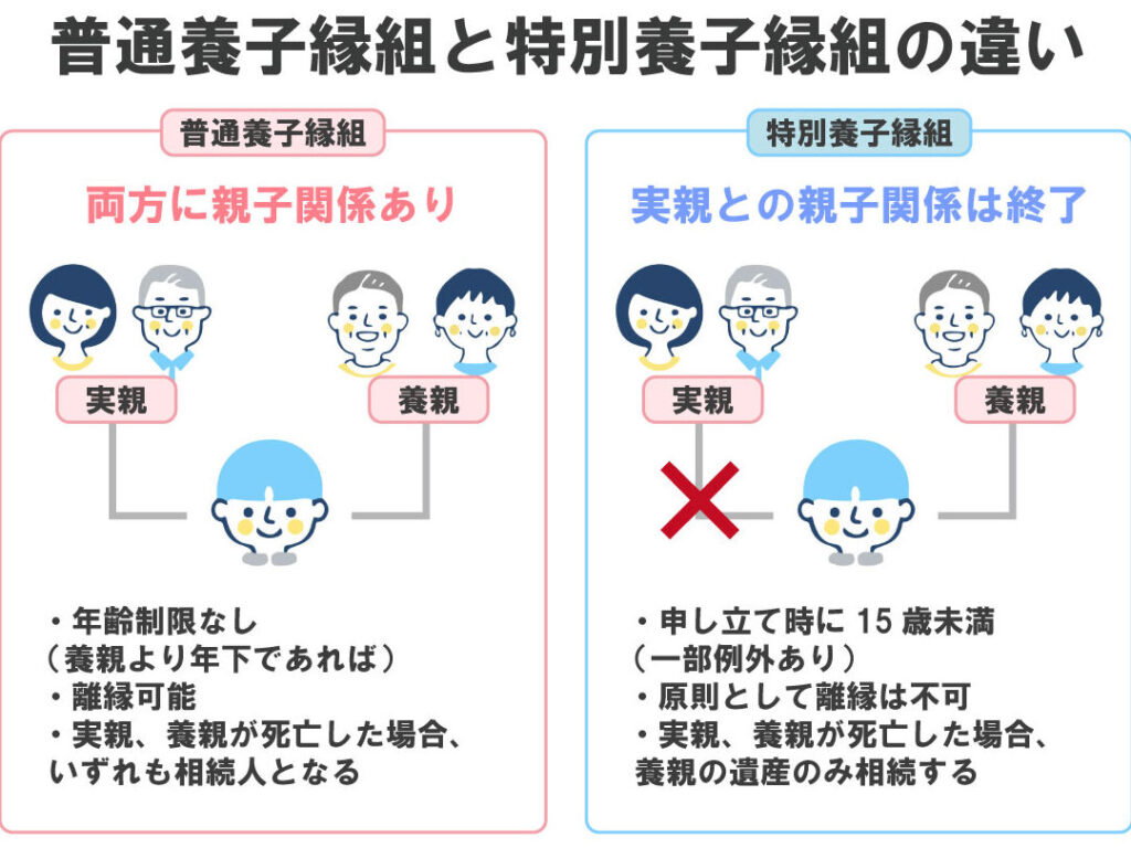 - 養子縁組の種類を理解する – 養子縁組には、特別養子縁組と普通養子縁組の2種類があります。特別養子縁組は、子どもに対する法的保護がより強い形式です。