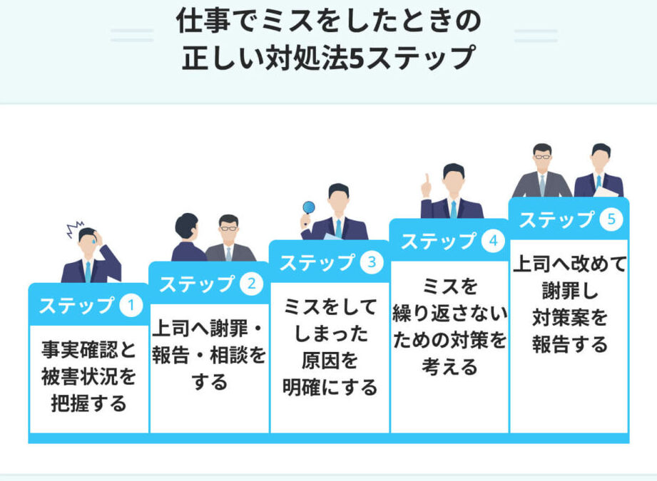 - **具体的に状況を整理する。**ミスの内容や影響を明確にする。