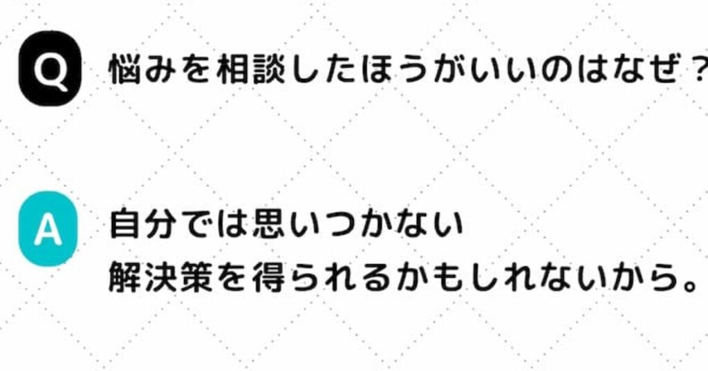 - 相談は対話として楽しむ。相談をストレスに感じず、リラックスして行うことを意識しましょう。