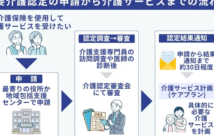 介護保険サービスを利用するための手続きは以下の通りです: