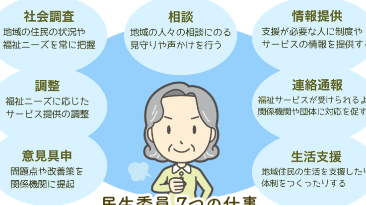 私たちが日常生活で直面するさまざまな問題に対し民生委員は頼りになる存在です。地域に根ざした彼らのサポートを受けることで私たちの生活はより良い方向へと進むことができます。