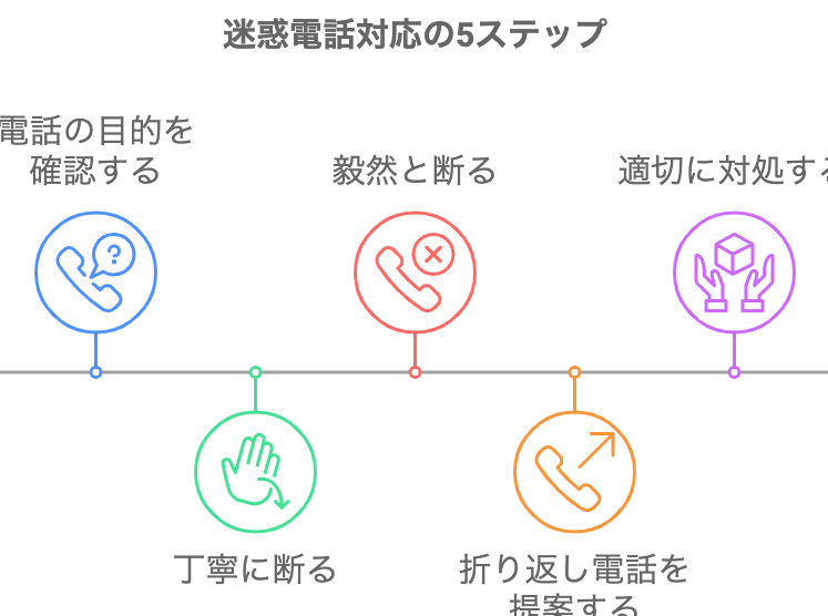 不審な電話を受けた場合の対処法は、次のように進めます。