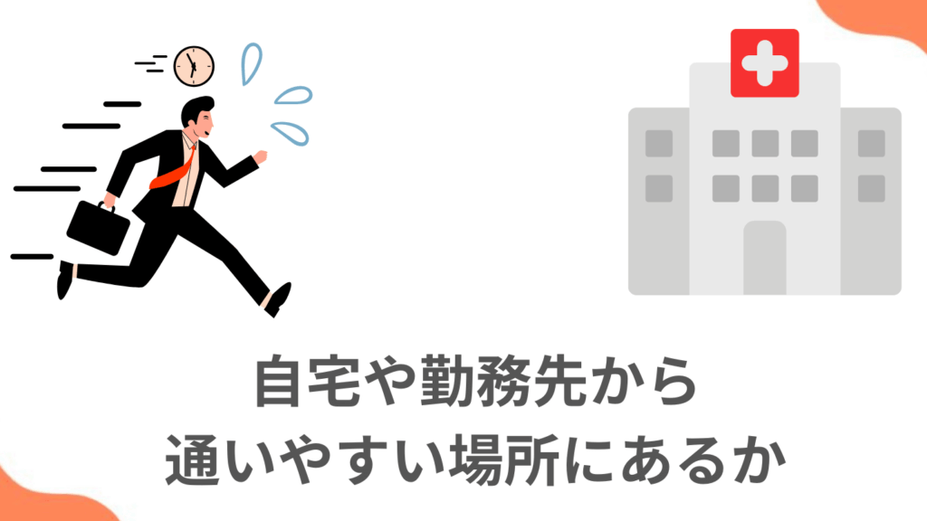 - 診療時間やアクセスを確認する。 診療を受けやすい時間帯や交通手段を事前に調べておくと、スムーズに受診できます。