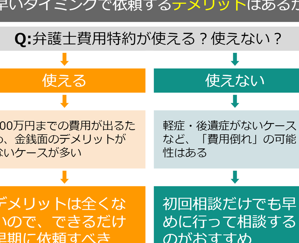 事故の結果が不確定な場合も、早めに弁護士に相談することが重要です。このタイミングで以下の点を考慮しましょう。