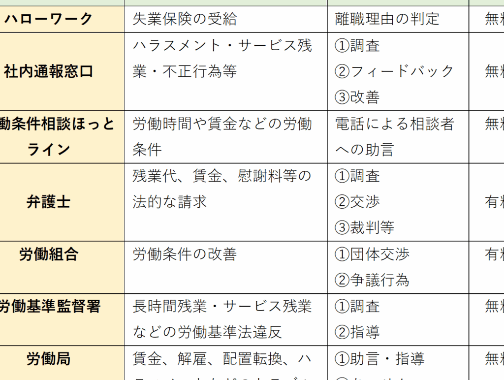 パワハラの相談先には、さまざまな種類があります。それぞれの特徴を理解し、適切な窓口を選ぶことが重要です。