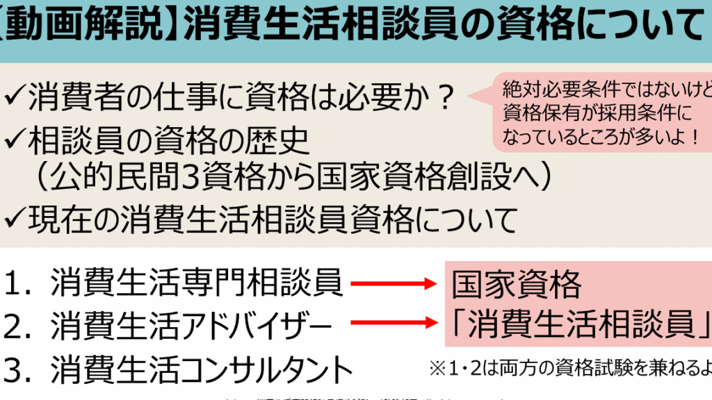 - 国家資格は2011年に創設されました。消費者の権利を守る意義が認識され、国家的な資格制度が必要とされました。