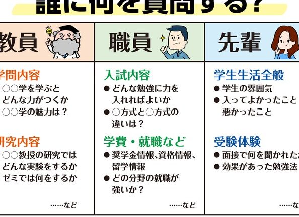- 事前に質問をリストアップする。自分が知りたいことを明確にしましょう。例えば、カリキュラムや入試の詳細などです。
