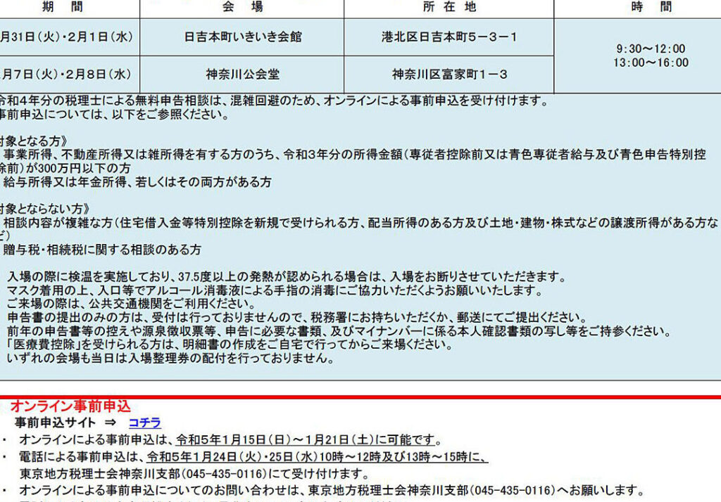 税理士事務所でも無料相談が行われています。こちらも特定の手順を踏むことで、確定申告に関する支援を受けられます。